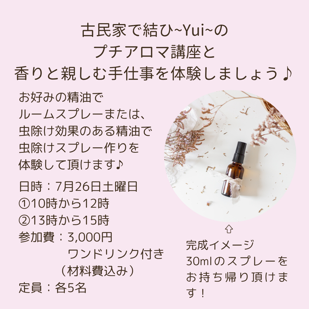 結ひ~Yui~さんの【プチアロマ講座と香りを楽しむ手仕事体験】