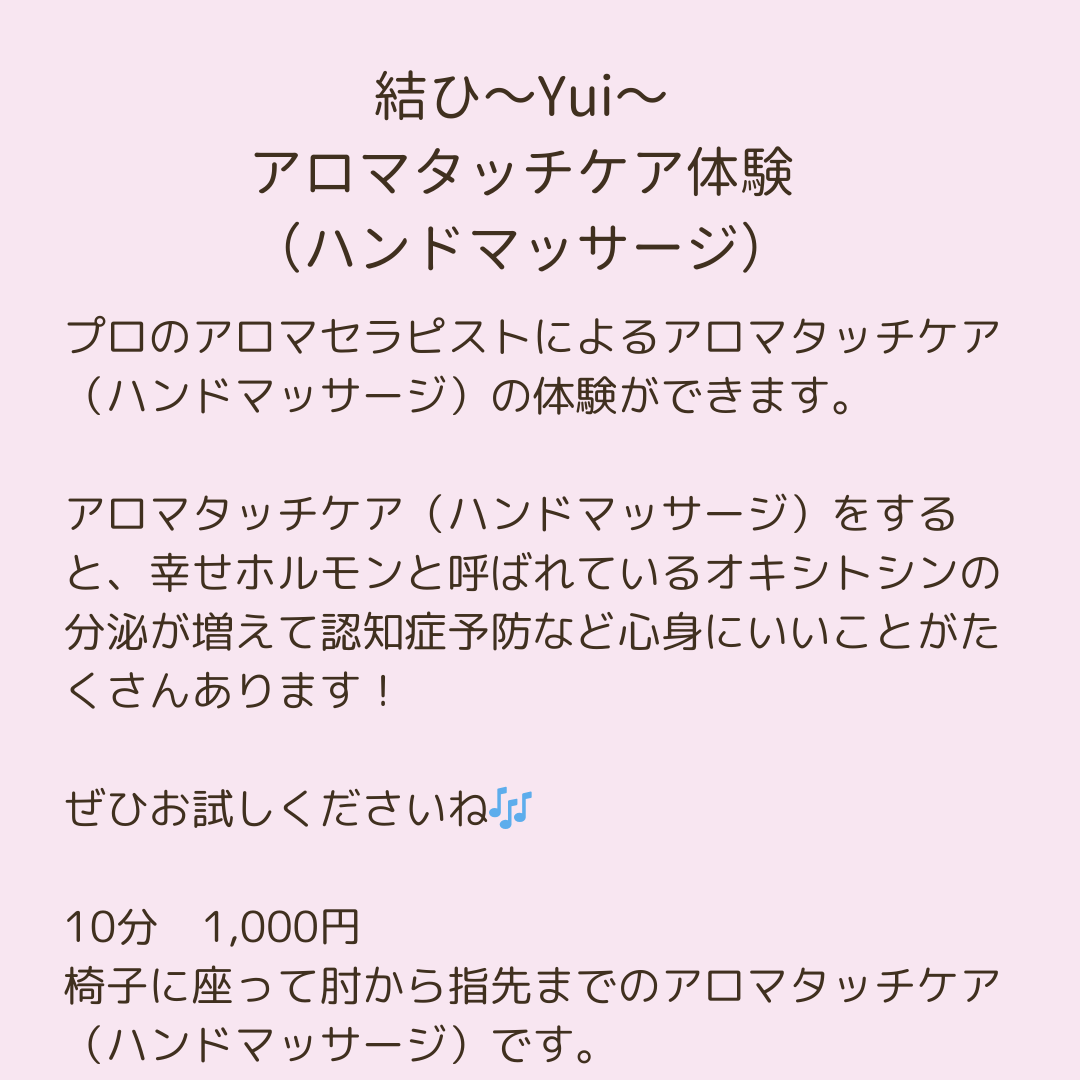 アロマタッチケア体験 ハンドマッサージ 10分 1,000円