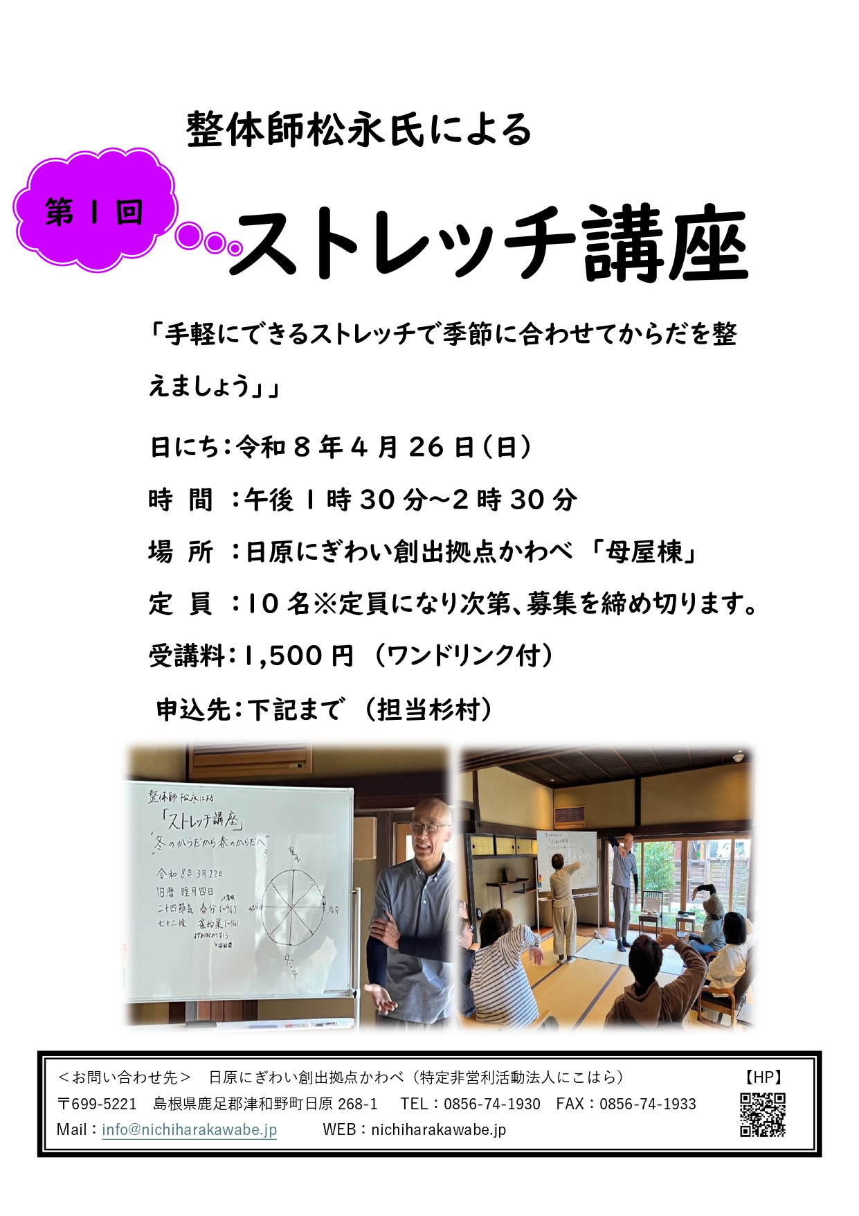 整体師松永氏による「ストレッチ講座」開催します❤